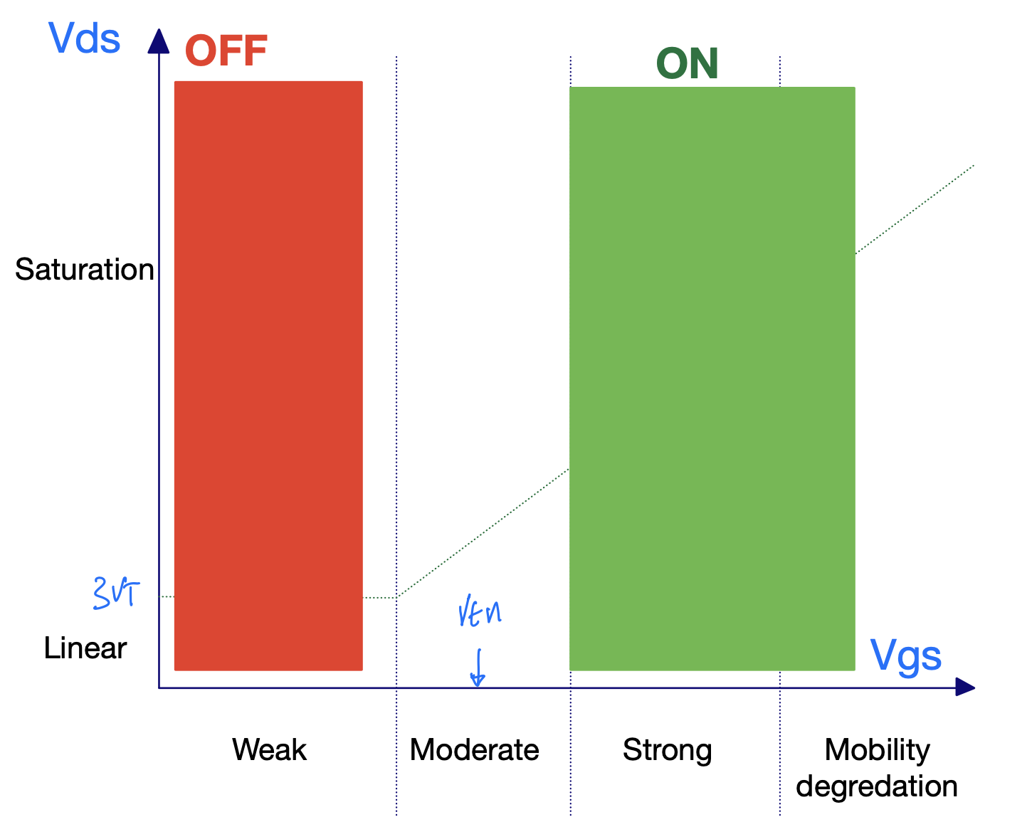\(V_{GS} > V_{TH}\) when \(V_G = V_{DD}\)