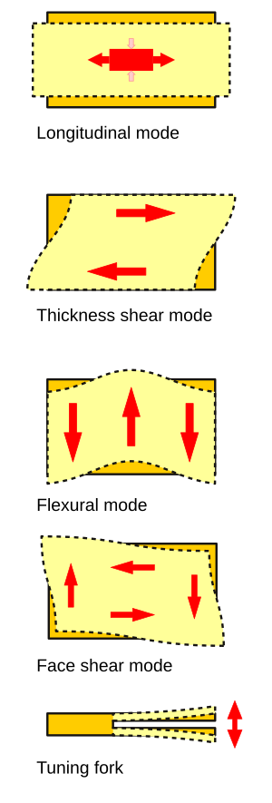 The vibrations in the crystal lattice can have many modes, as illustrated by figure below.